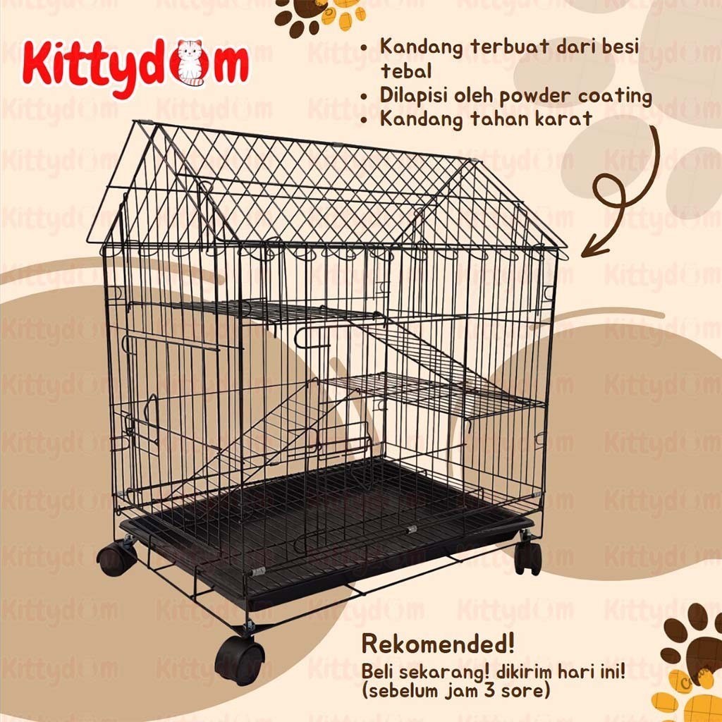KITTYDOM SANGKAR KANDANG KUCING STANDAR SIZE LARGE L 60X40X70CM PLUS ATAP RODA KANDANG MODEL RUMAH 2 TINGKAT KUCING