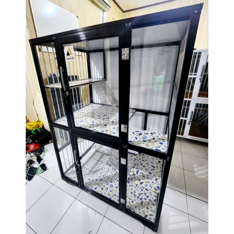 KANDANG KUCING ALUMINIUM 2 PINTU 2 LANTAI SULTAN