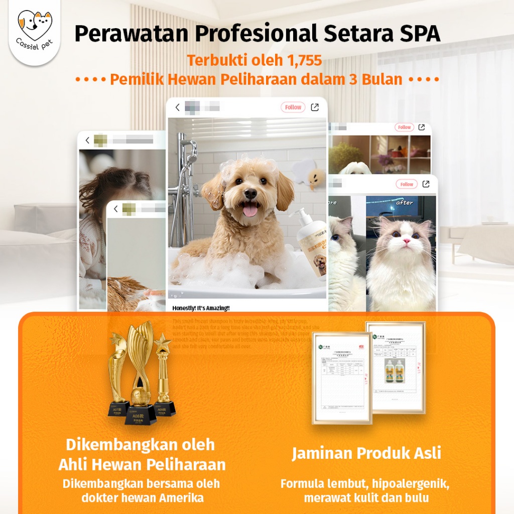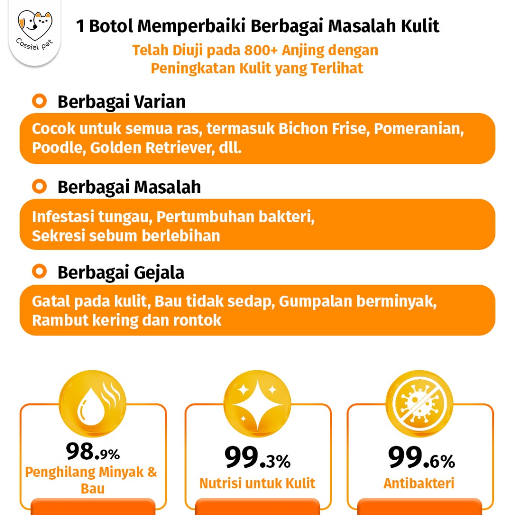 CASSIEL PET ANTI KUTU & JAMUR SHAMPOO KUCING ANJING 2 IN 1 500ML TOTAL PROTECTION SHAMPO PELEMBUT KUTU JAMUR ANTI T