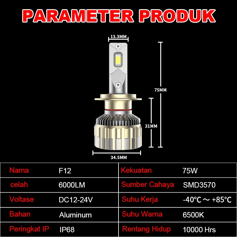 CC·LOT F12 Lampu Depan Mobil H4 75W Lampu Depan Mobil LED Super Terang Sepasang 11000 Lumens Satu LED Suhu Warna Lampu