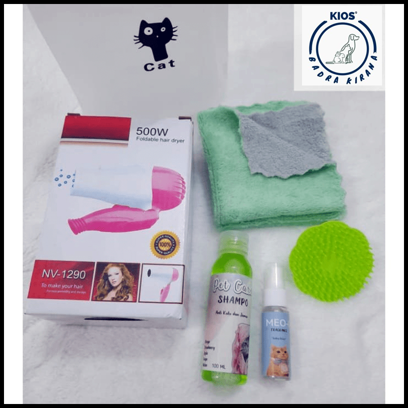 PAKET GROOMING HEWAN MANDI KUCING HAIR DRYER + HANDUK MICROFIBER + SISIR + SHAMPO GRATIS TAS POUCH