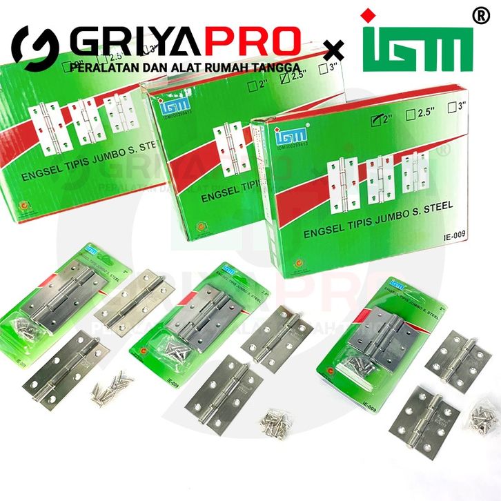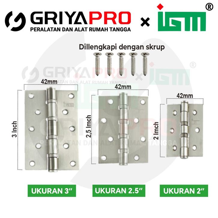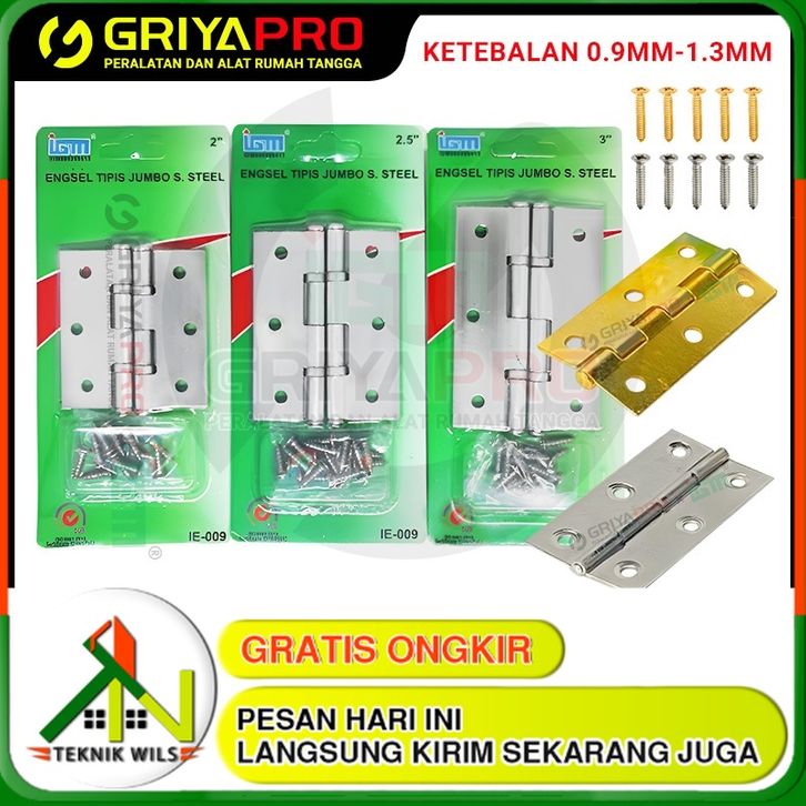Engsel Bearing Tipis Jumbo Stainless 2" 2.5" 3" untuk Pintu Lemari, Laci, Jendela + Sekrup 1 Set