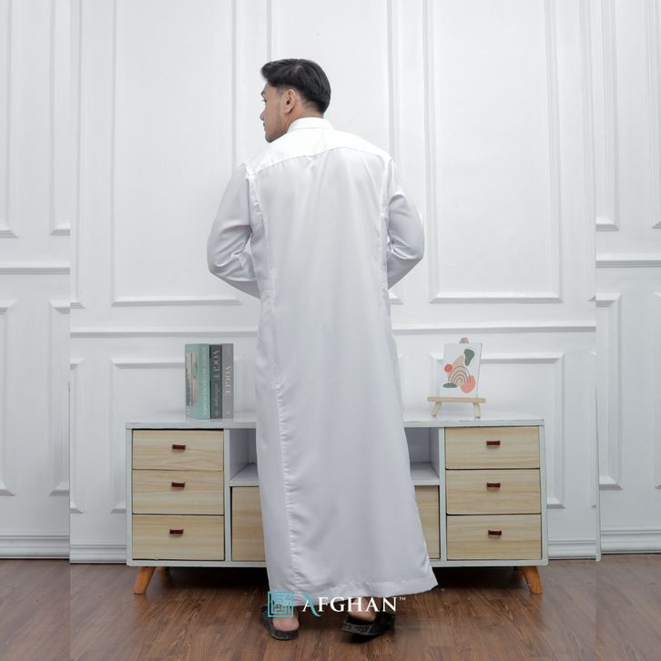 Jubah Saudi Afghan Bahan Niagara/Picasso - Baju Gamis Pria Dewasa Premium Cuttingan Suja Warna Putih dan Hitam Polos Siz