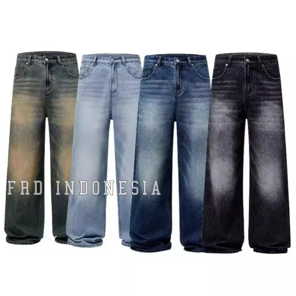 Celana Jeans Pria Baggy Pants Korean Style Oversize Loose Blue Jeans Straight Kulot Boyfriend Jeans Longgar Celana Cowo