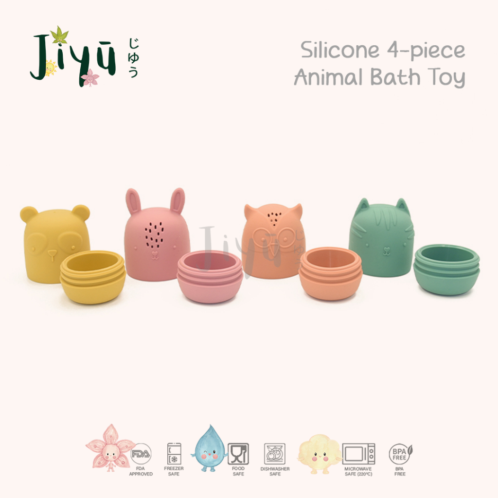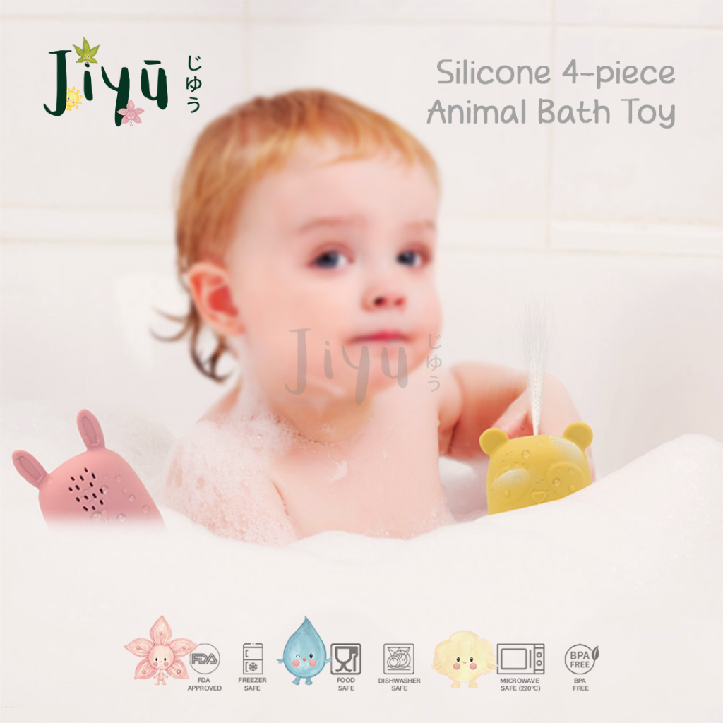 JIYU [JA-016] SILICONE 4-PIECE ANIMAL BATH TOY / MAINAN MANDI HEWAN BPA FREE BABY TODDLER BAYI ANAK
