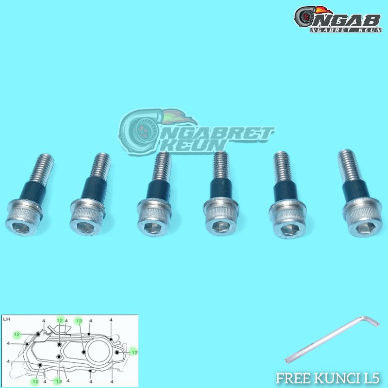 6 BUAH BAUT L STAINLESS TUTUP COVER CVT NMAX AEROX 155 XMAX LEXI ORI STAINLESS STEEL 304 ANTI KARAT