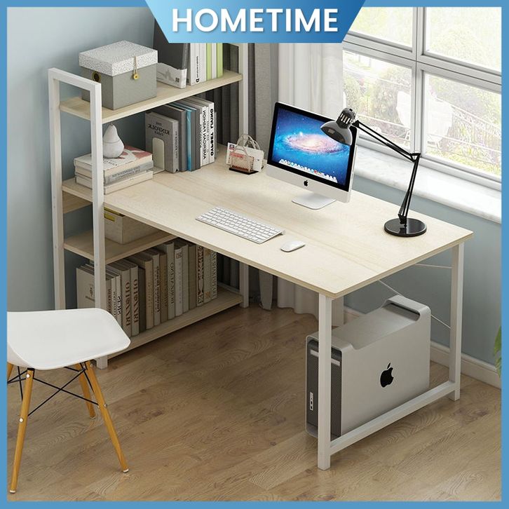HOMETIME Meja Komputer Minimalis Meja Kantor Meja Panjang + Rak