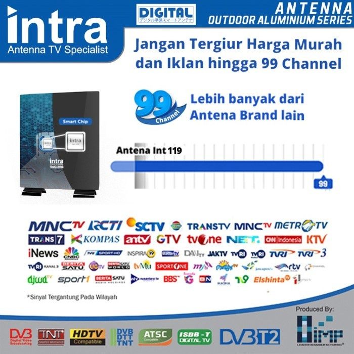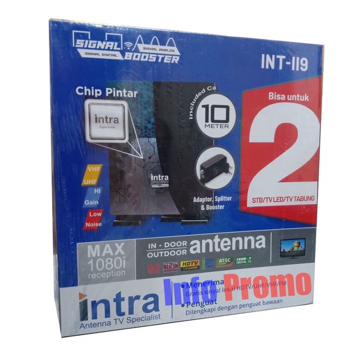 Antena TV Original Antena Tv Digital Indoor Outdoor Intra INT-119 Bisa 2 Tv Kabel Panjang 10 Meter Full HD Original