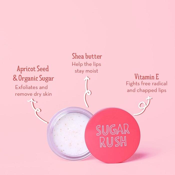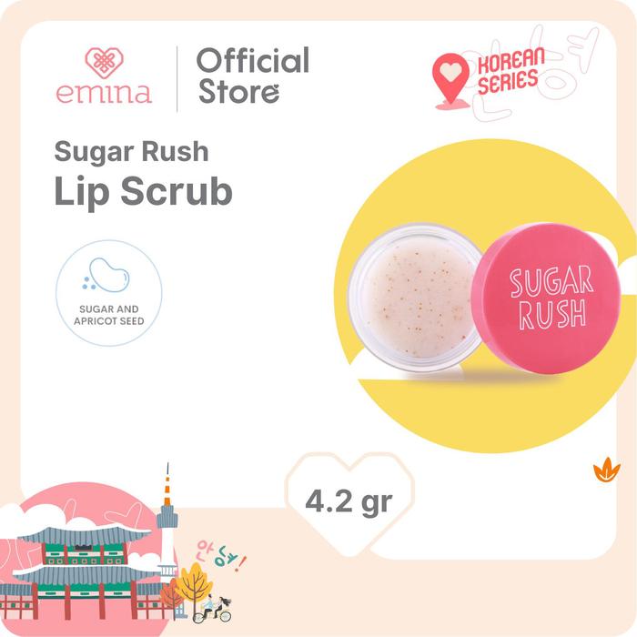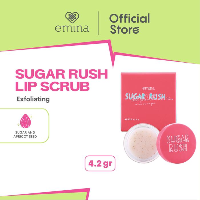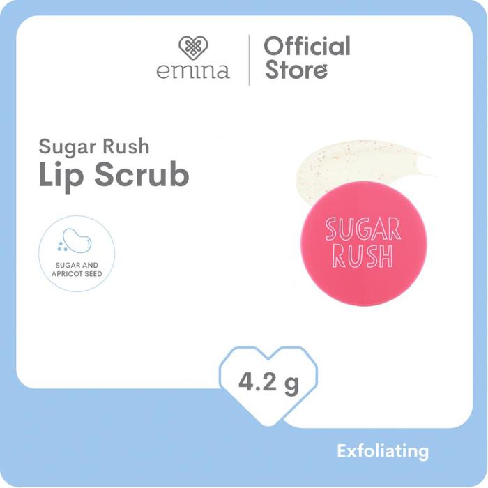 Emina Sugar Rush Lip Scrub 4.2 g - Scrub Eksfoliasi Bibir, Melembutkan & Mencerahkan Bibir Gelap - 4.2 gr