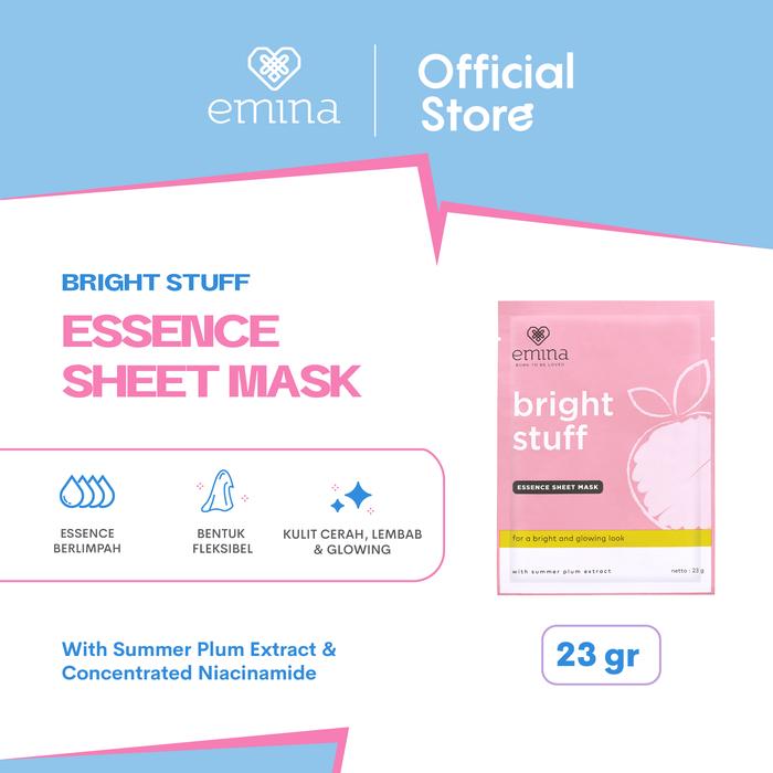 Emina Bright Stuff Essence Sheet Mask 23 g - Masker Wajah Cerah Kenyal dan Glowing - 23 gr