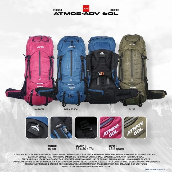 Tas Carrier Atmos Adv 60 Liter Arei Outdoorgear