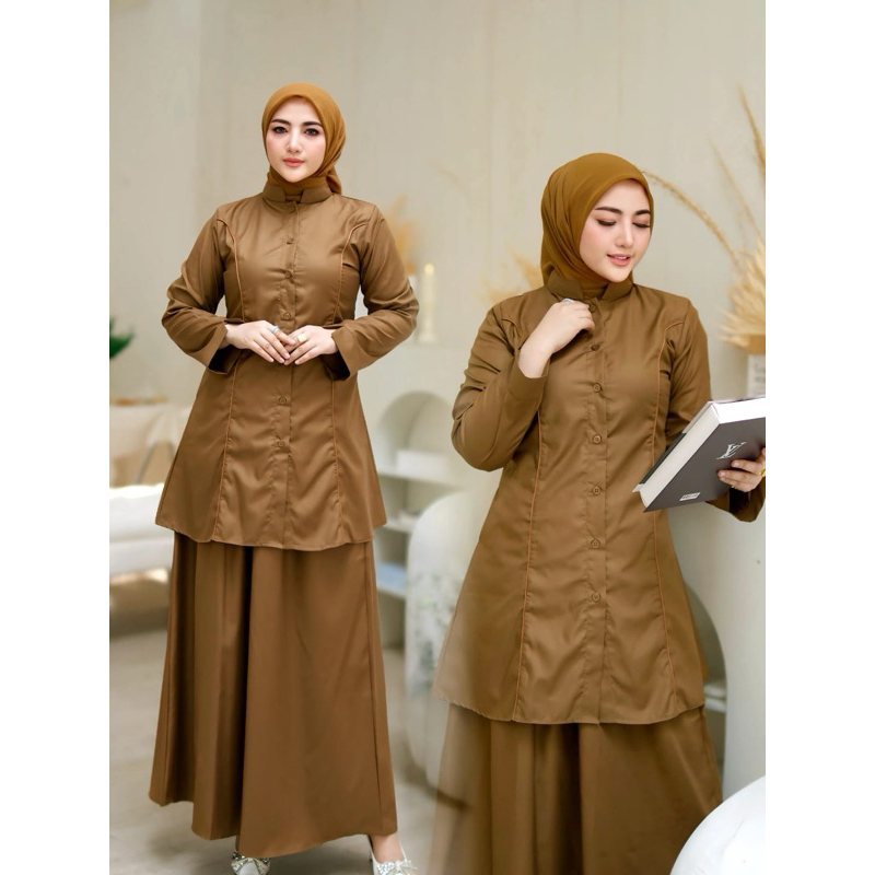 Stelan Rok Pemda Asn Baju Dinas Pemda Baju PDH Baju Kerja Pemda Warna Khaki Tua Bahan Katun Toyobo Premium