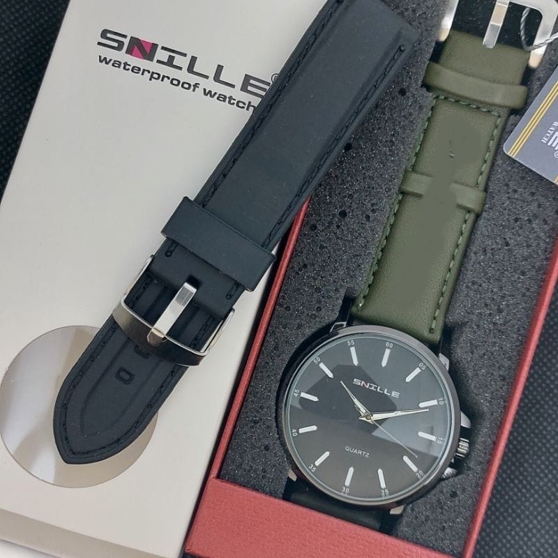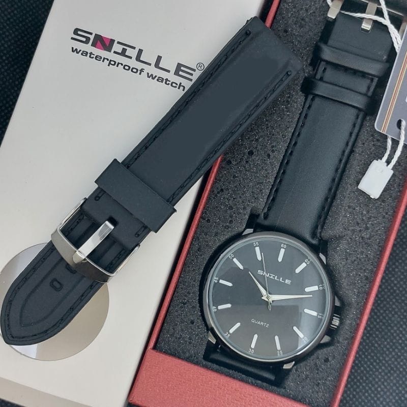 JAM TANGAN PRIA SNILLE N1013 ORIGINAL TALI KULIT WATERPROOF Paket Free Tali Rubber + Box + Baterai Cadangan WATCHES( BIS