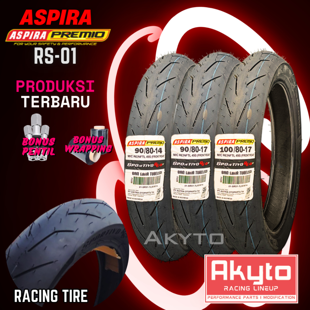 [PAKET LEBIH MURAH] BAN SOFT COMPOUND SEPASANG ASPIRA PREMIO RS-01 FREE TUBELESS / BAN TUBELESS R14 R17 / BAN MOTOR BAL