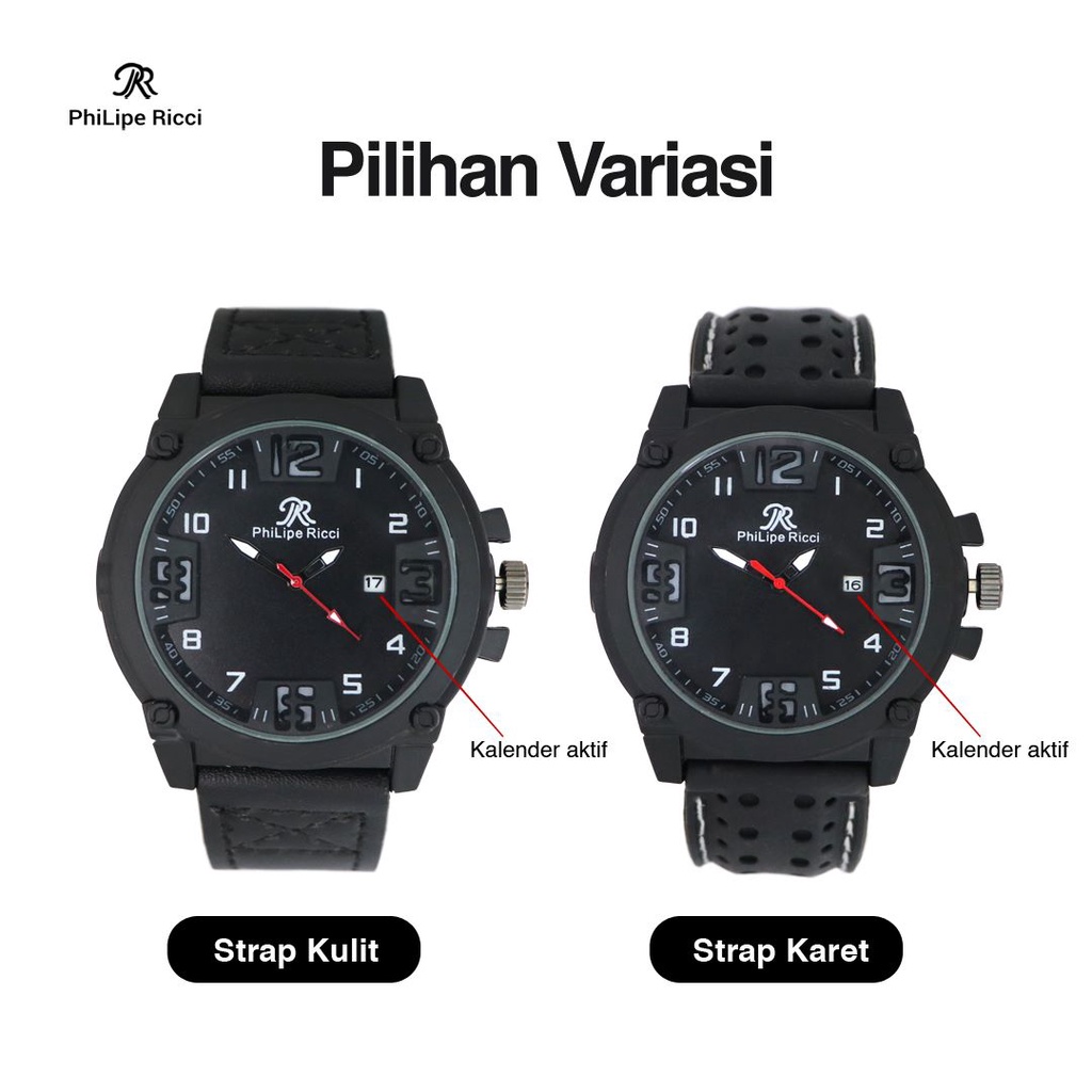 PhiLipe Ricci Jam Tangan Pria Analog Tanggal Quartz Terbaru KLDR Free Box