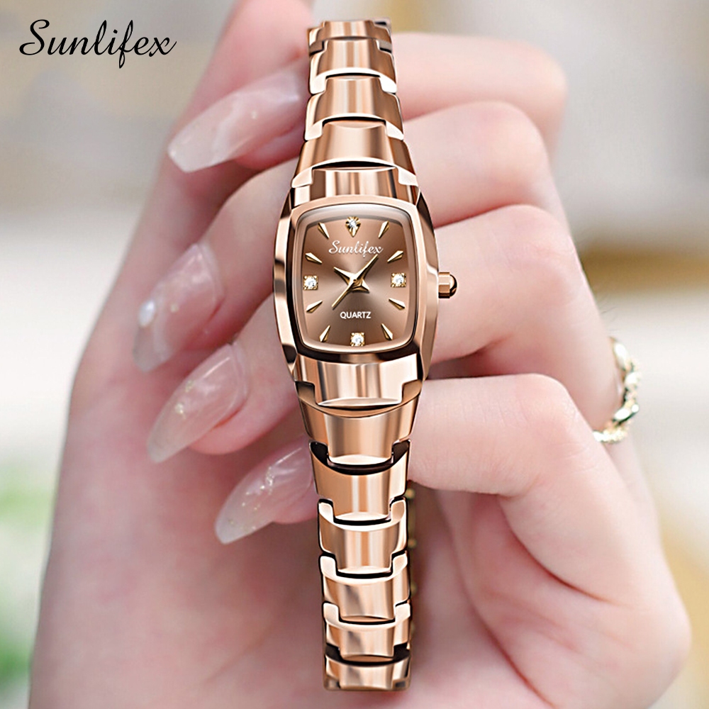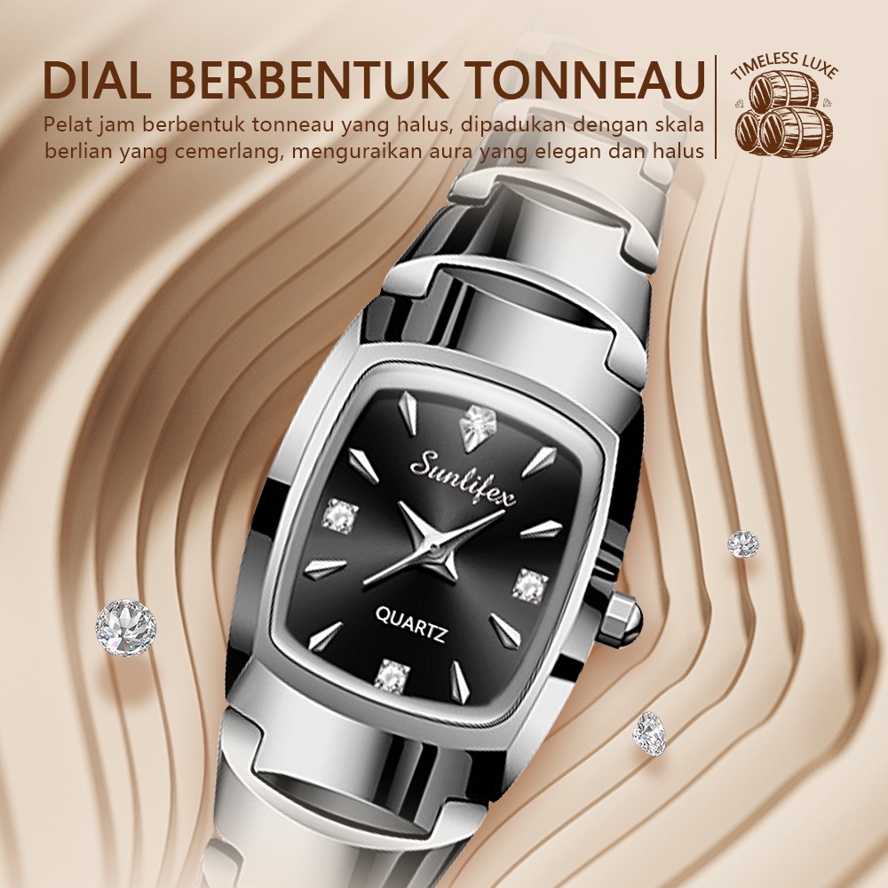 Sunlifex 9089 New Jam Tangan Wanita Korea Elegan Bisnis Kasual Persegi Anti Air Tali Paduan Cewek