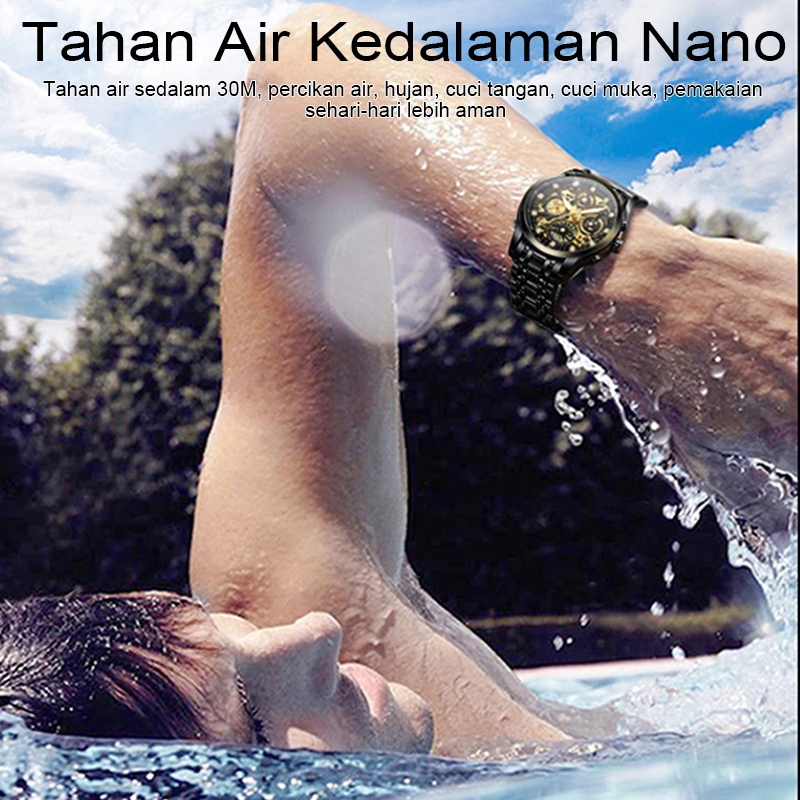 AOKEYO Jam Tangan Pria 4088 Original Kuarsa Kalender Tali Stainless Steel Jam Tangan Cowok