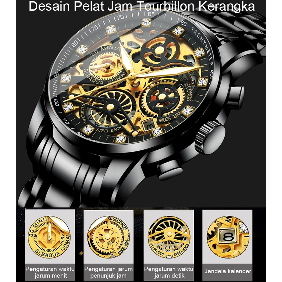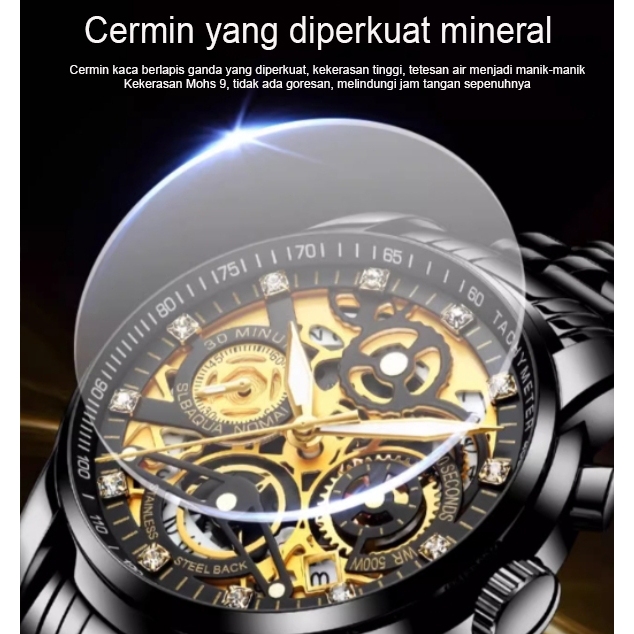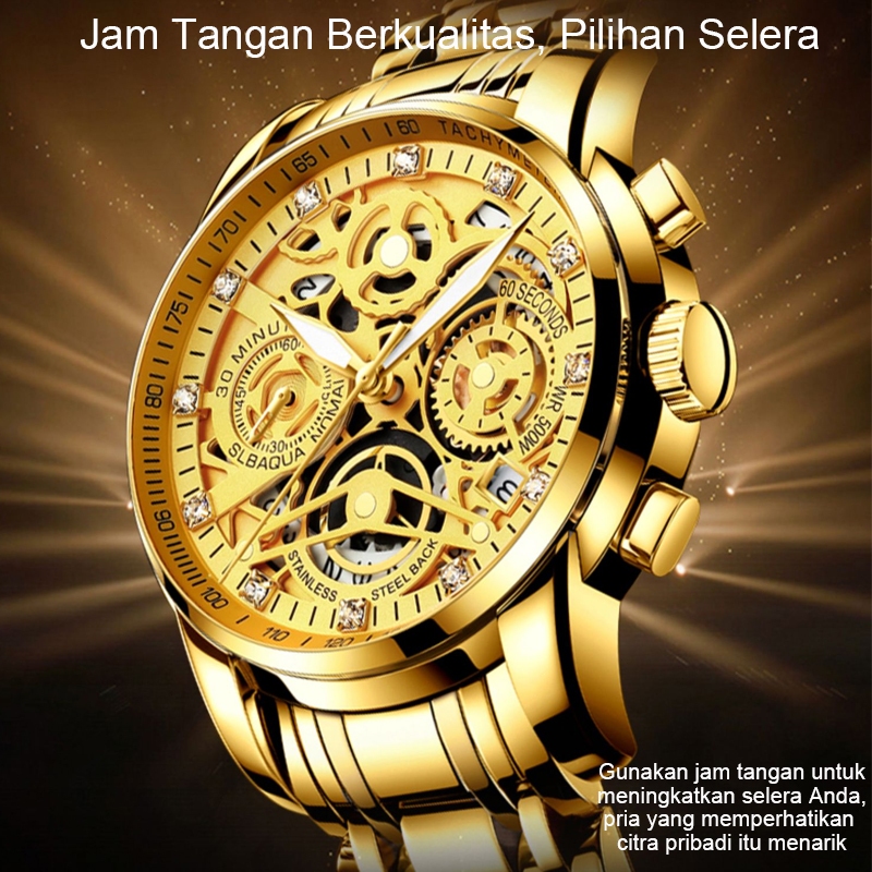 AOKEYO Jam Tangan Pria 4088 Original Kuarsa Kalender Tali Stainless Steel Jam Tangan Cowok