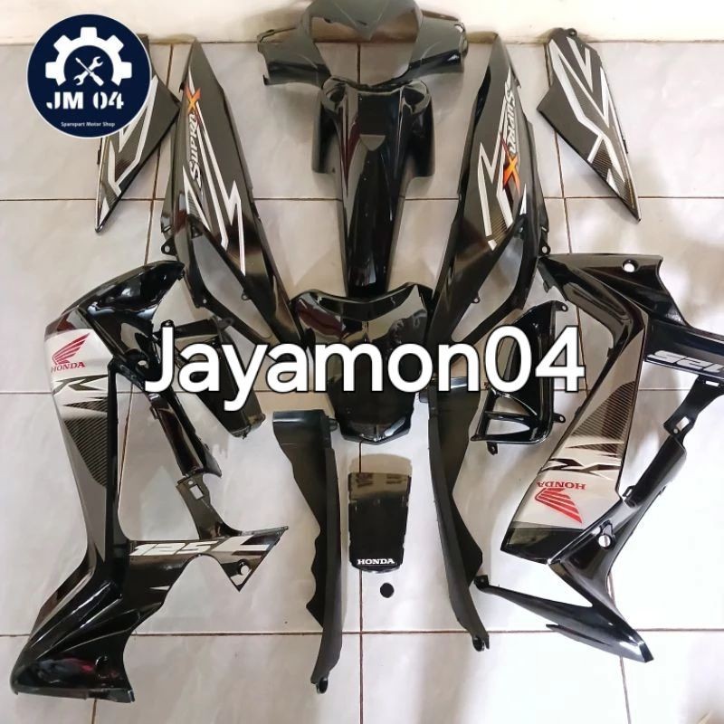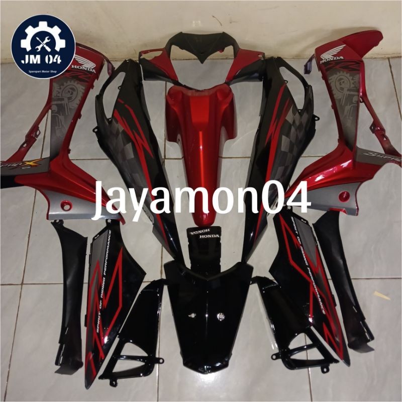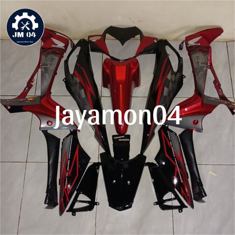Cover Body Full Halus Motor Honda Supra X 125 Old Batman Plus Striping Warna Hitam Merah