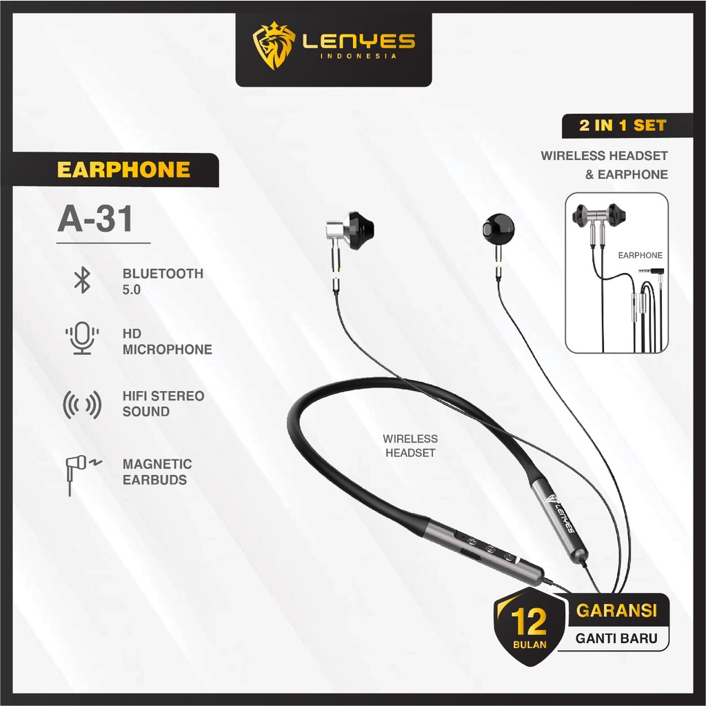 LENYES A31 Earphone Bluetooth + Headset Kabel Hybrid 2 in 1 Hifi Stereo Bass Audio IEM Handsfree