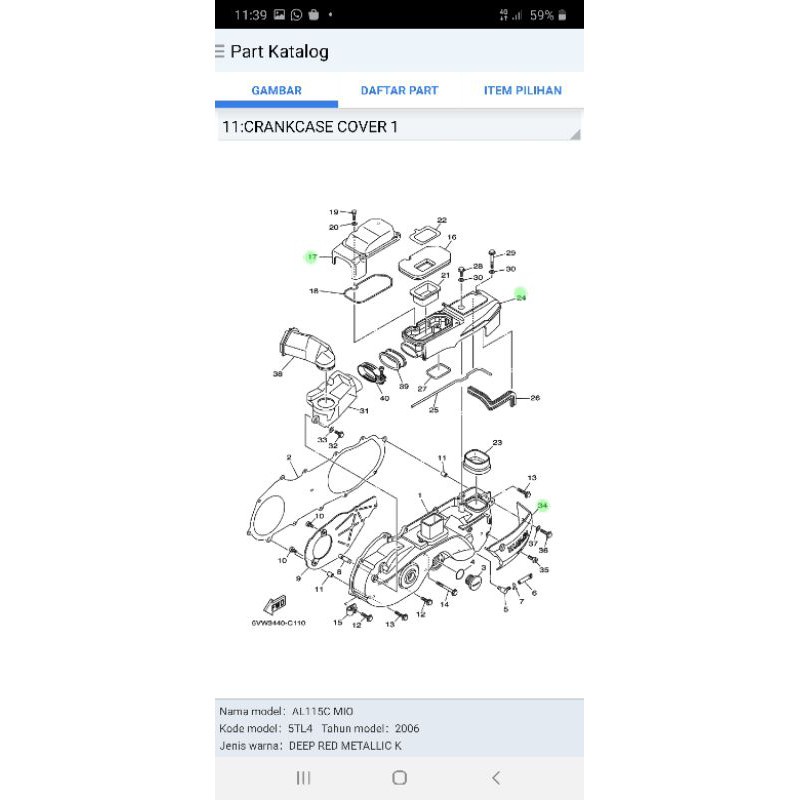 COVER TUTUP TEMPAT BAK CVT SET MIO CARBU SMILE SPORTY ORIGINAL YAMAHA GENUINE PARTS 5TL-E5492-00 5TL-E5333-00 5TL-E5413-