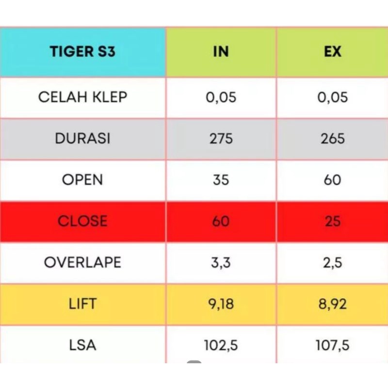 Noken as Tiger special CAM Set Temlar Sepatu Touring harian Balap bore up