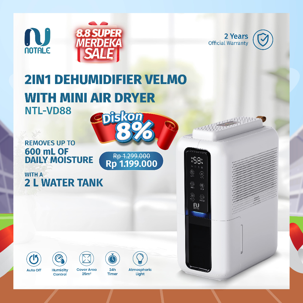 TeknoXpress Notale Dehumidifier Velmo 2IN1 Penghilang Kelembaban & Penyaring Udara multifungsi