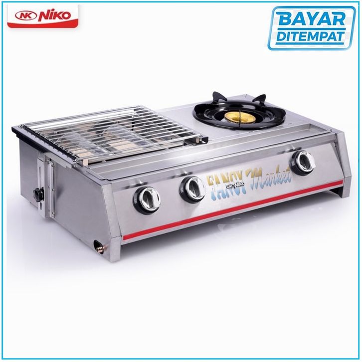 Kompor Gas 2in1 NIKO GRS-21 / SANEX KPP128 | Panggangan + 1 Tungku | Sate Sosis Ikan Ayam BBQ Praktis