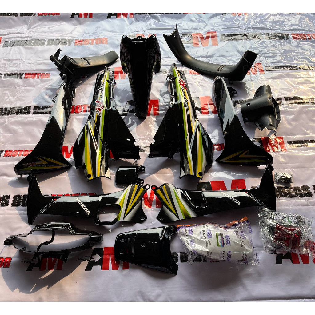 FULL BODY HALUS DAN KASAR HONDA SUPRA FIT LAMA / SUPRA X LAMA HITAM (REM DEPAN CAKRAM/TROMOL) + STIRIPING, BAUT, REFLEKT