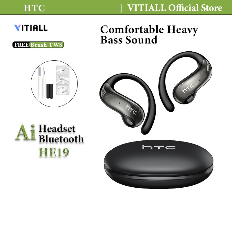HTC NE19 AI Bluetooth 6.0 Headset Nirkabel Headset Nirkabel IPX5 Peredam Kebisingan HD Olahraga Tahan Air Peredam Kebisingan Bass yang Kuat