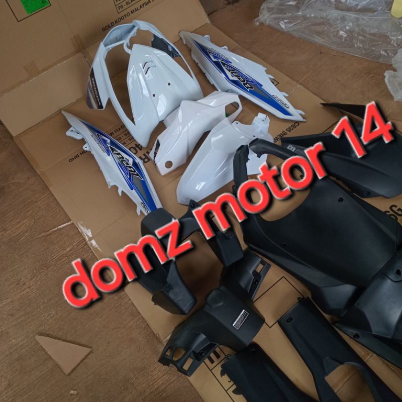 cover body halus kasar honda beat fi 2013 2014 strter kasar putih striping biru