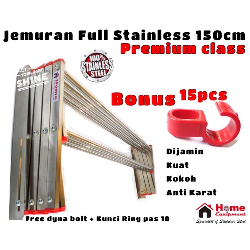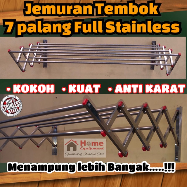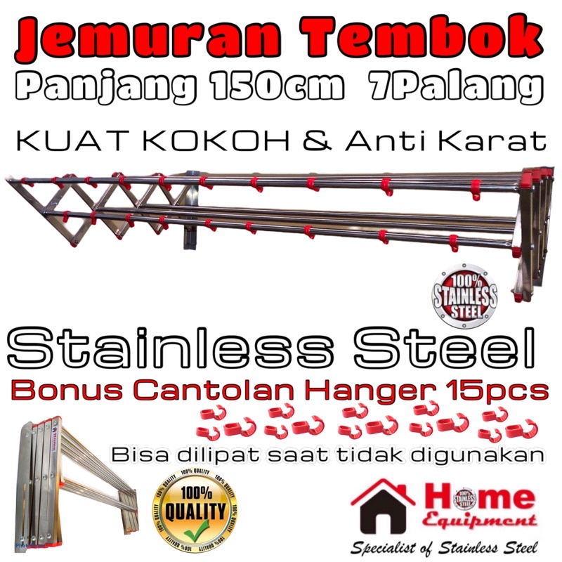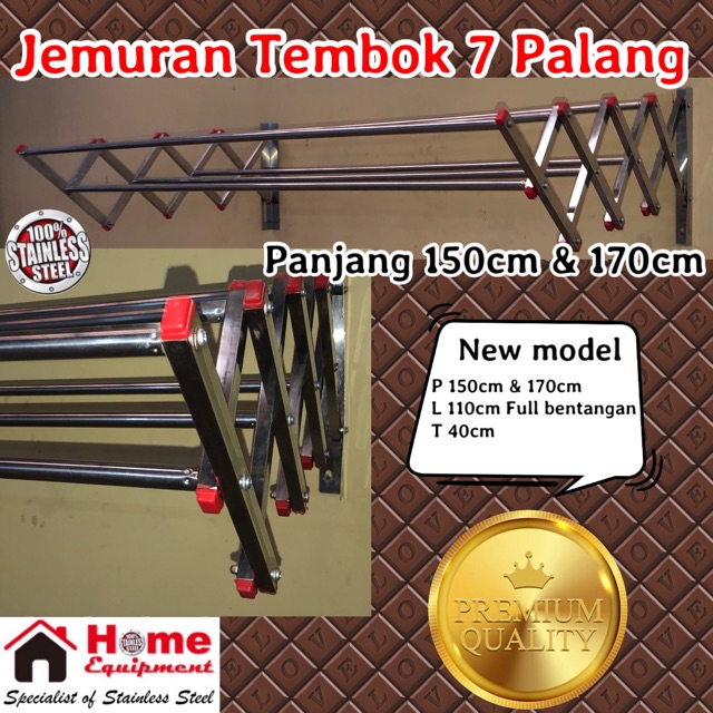 JEMURAN TEMBOK PREMIUM 7GALANG 150cm DIJAMIN ASLI STEINLESS STEEL SANGAT KUAT DAN KOKOH ANTI KARAT