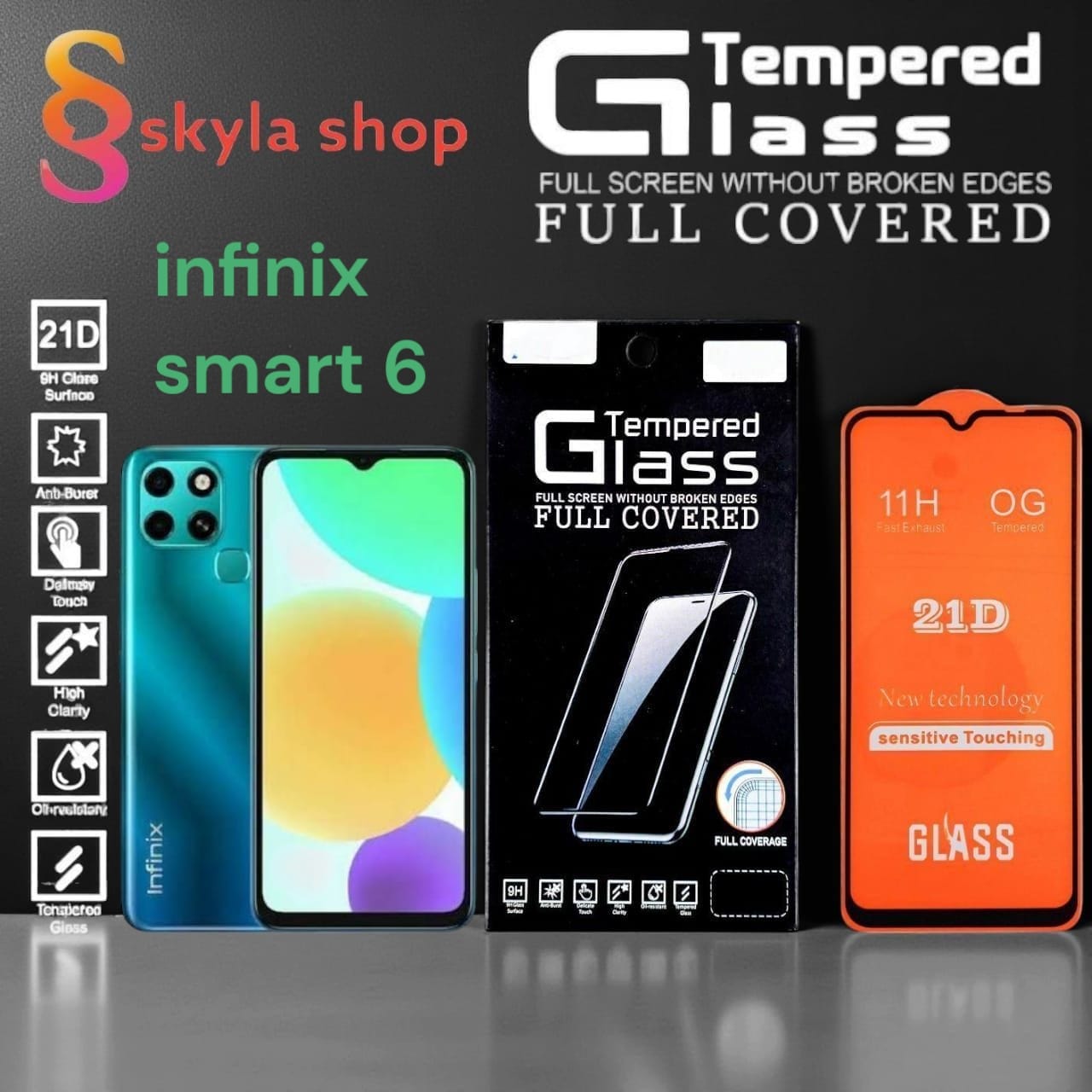 Tempered Glass INFINIX SMART 6 Antigores FULL LEM 21D Pelindung Layar Berkualitas