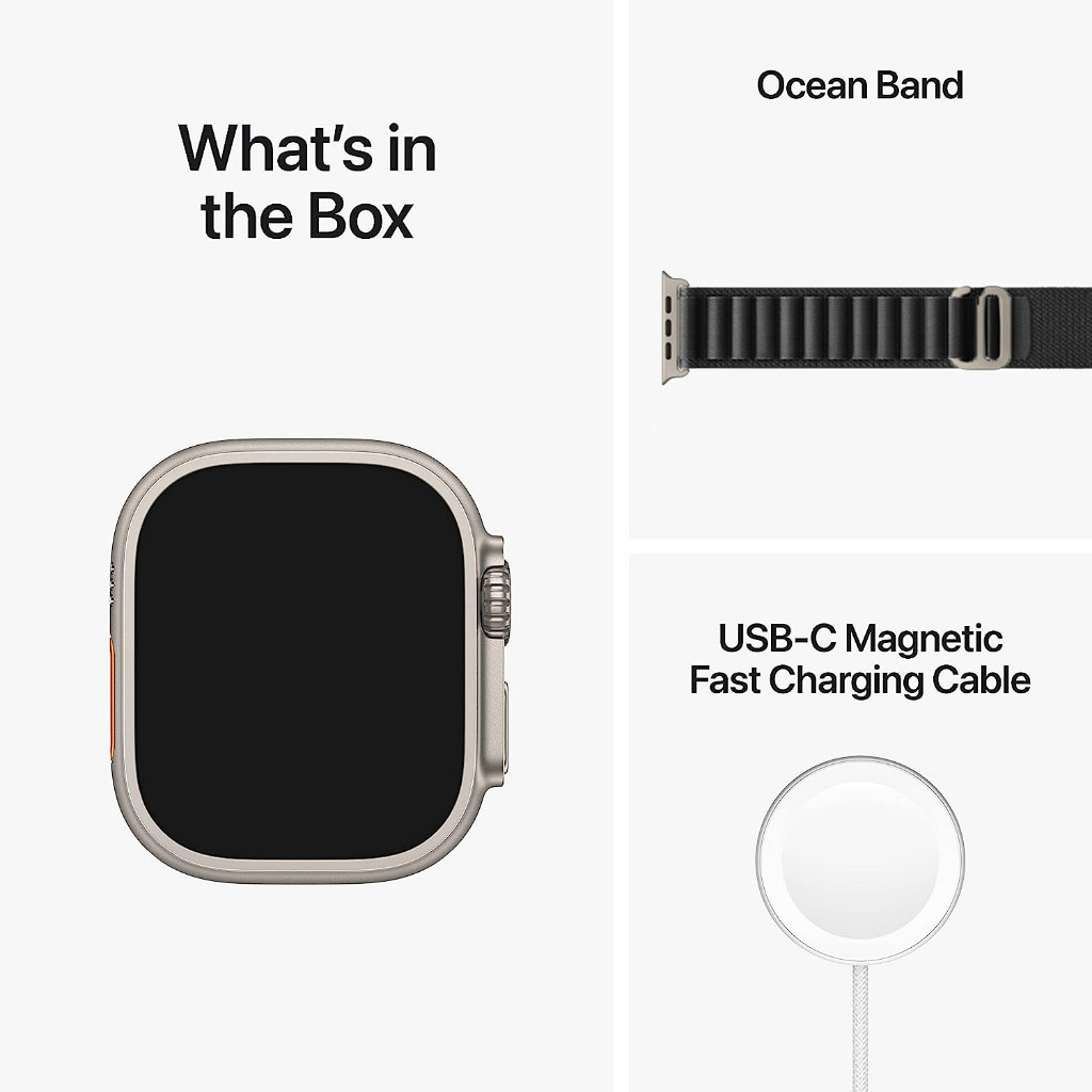 APPLE WATCH ULTRA 49MM GPS + CELLULAR, TITANIUM CASE WITH MIDNIGHT OCEAN BAND SMART WATCH TEMPAT LOKAL(GARANSI SATU TAHUN)