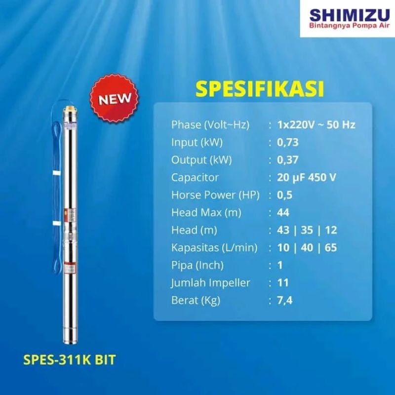 POMPA AIR SATELIT SHIMIZU SPES-311K BIT 0.5 HP + KABEL /POMPA SUBMERSIBLE 1/2 HP 3 INCH