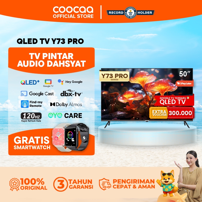 [TERBARU] COOCAA TV 50 INCH Y73 PRO - 4K QLED+ - guugle TV - 120HZ MOTION - S AI ENGINE - MEMC - DBX-TV - DOLBY AUDIO - SAPPHIRE CRYSTAL OPTICS - EYE CARE 5.0 (COOCAA 50Y73PRO)