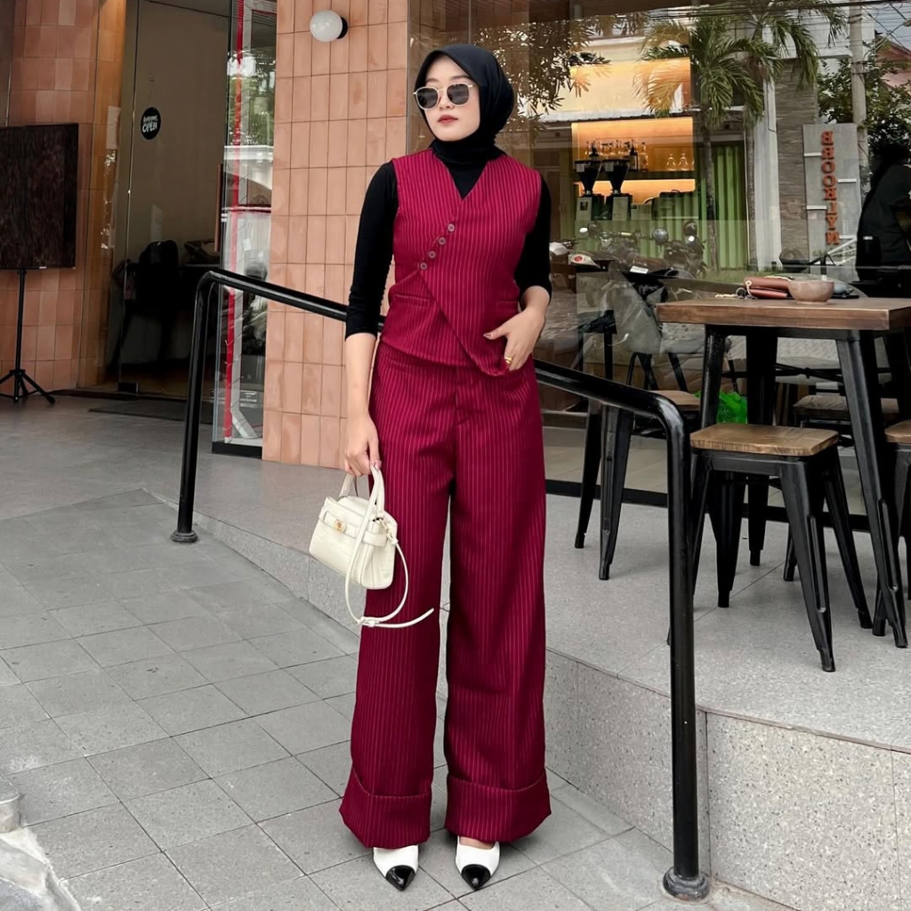 ONESET STRIPE - SETELAN STRIPE WANITA - SETELAN WANITA - VEST DAN CELANA STRIPE