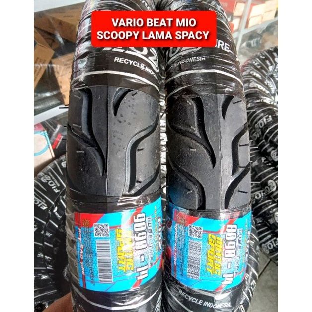 SEPASANG - 1 SET Ban Luar Motor Matic Metik TUBELESS & NON TUBELESS MOTIF FLEMO 80/90 & 90/90 RING 14 , VARIO BEAT