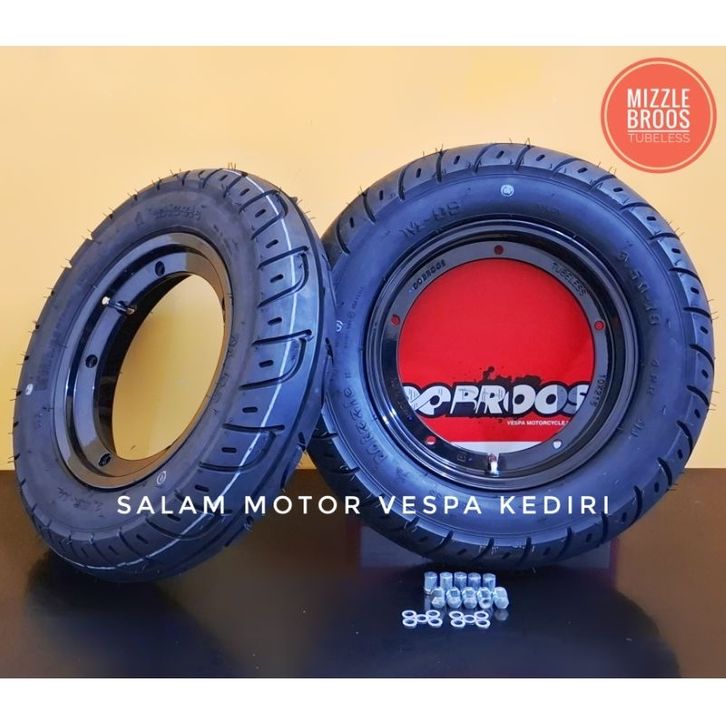 Paket velg Broos ring 10 dan Ban mizzle ring 10 Tubeless px sprint excel exclusive velg vespa tubeless Hitam black