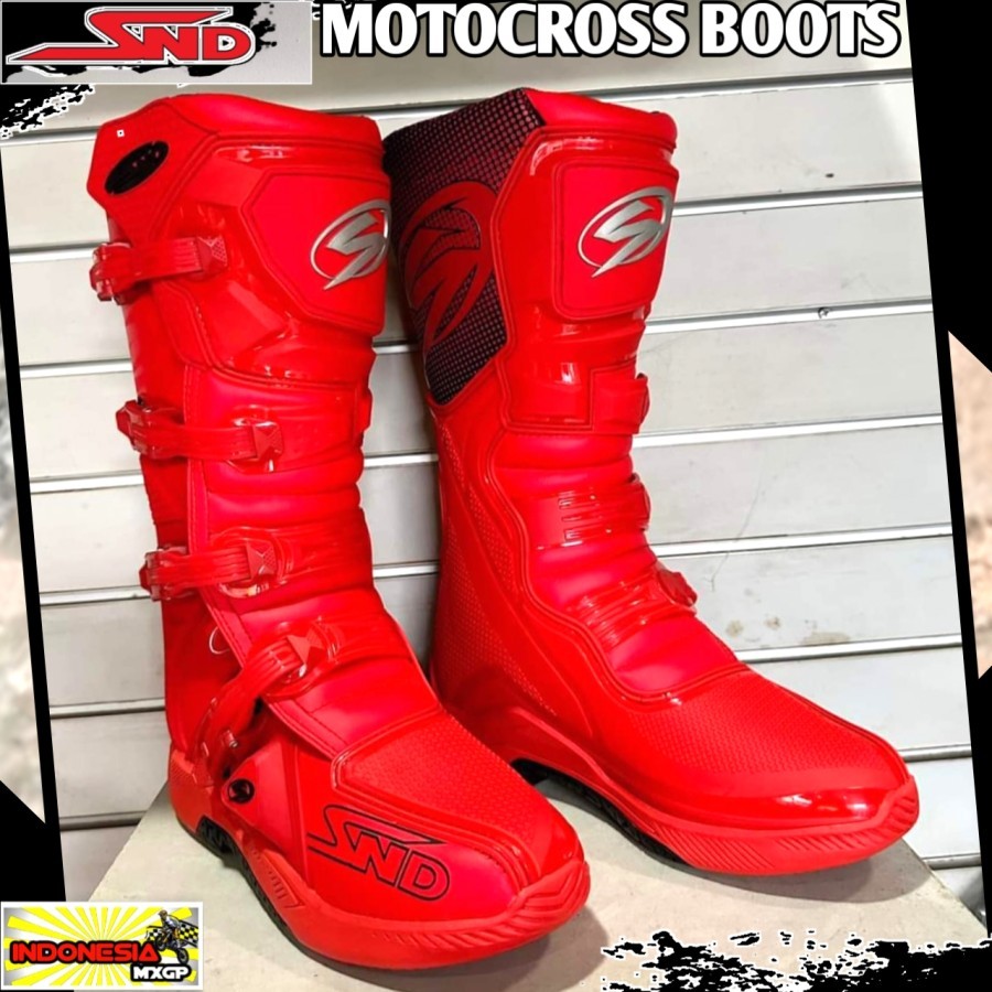 SND MX NEW BOOTS - SEPATU ADVENTURE TRAIL - ENDURO KOMPETISI OFF-ROAD - MOTOCROSS ORIGINAL - MERAH - 41 42 43 44 45 46