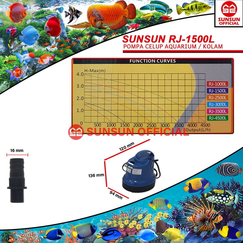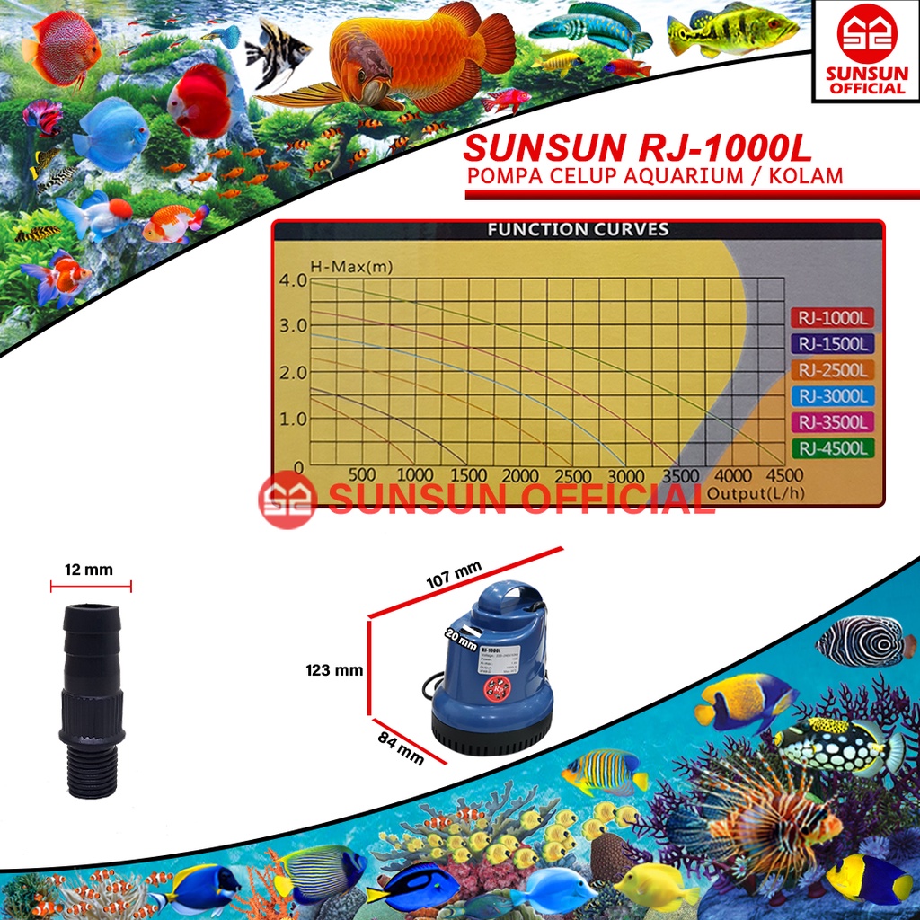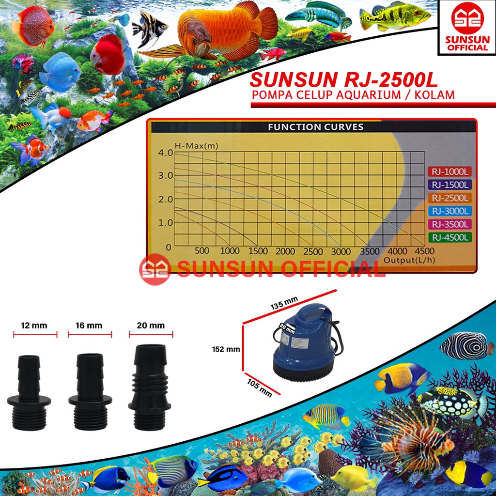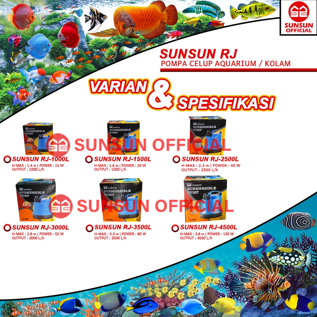 SUNSUN RJ 1000L/1500L/2500L SERIES POMPA AIR CELUP KOLAM AQUARIUM