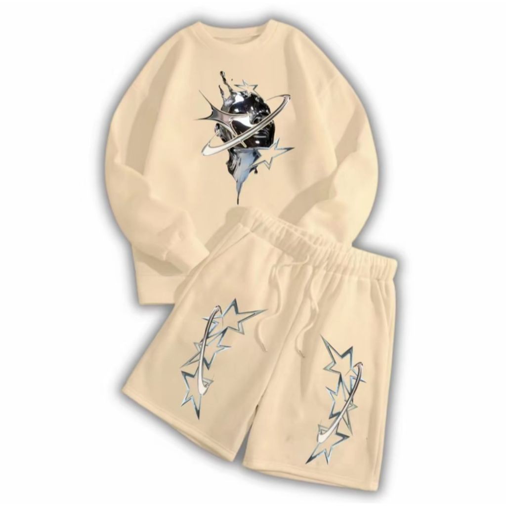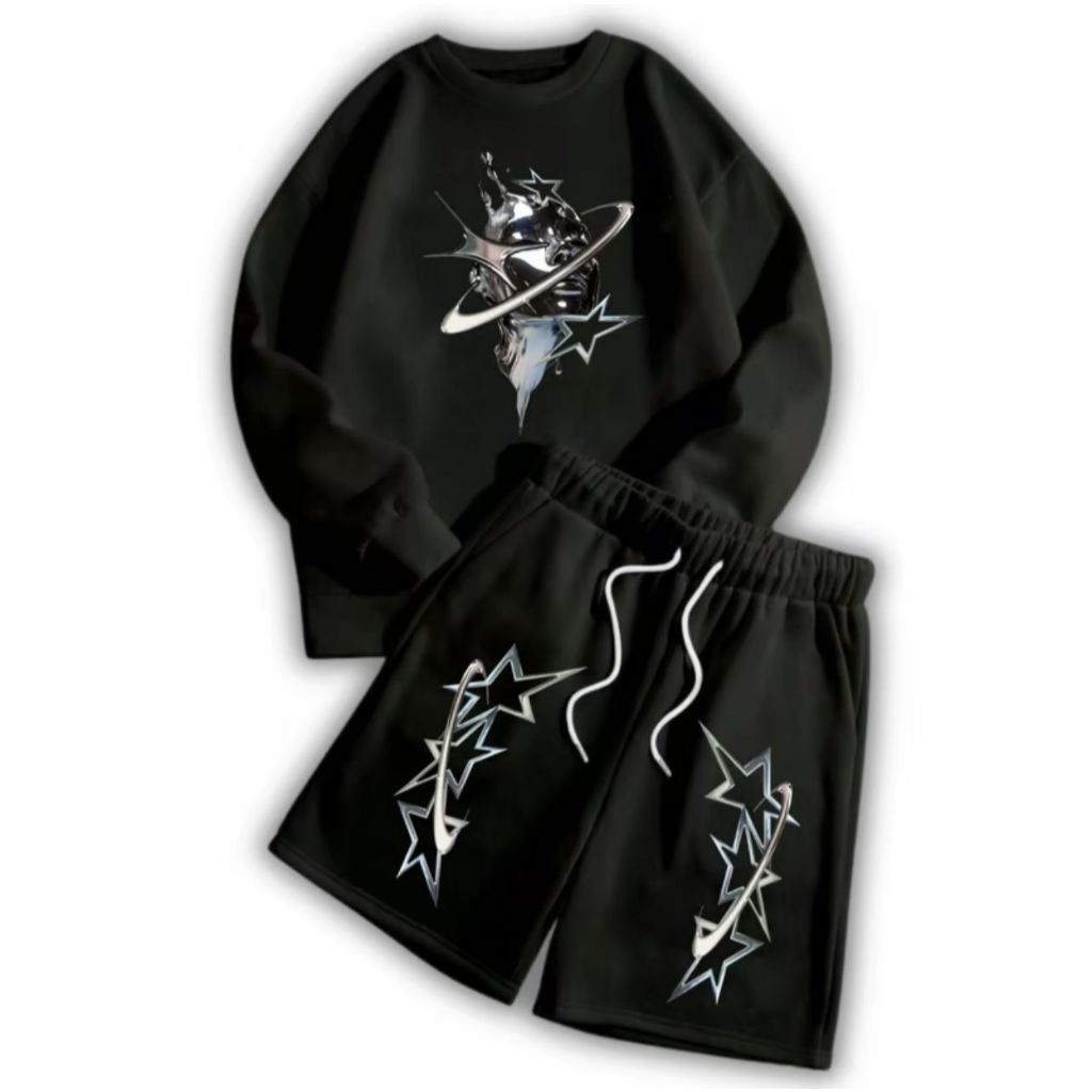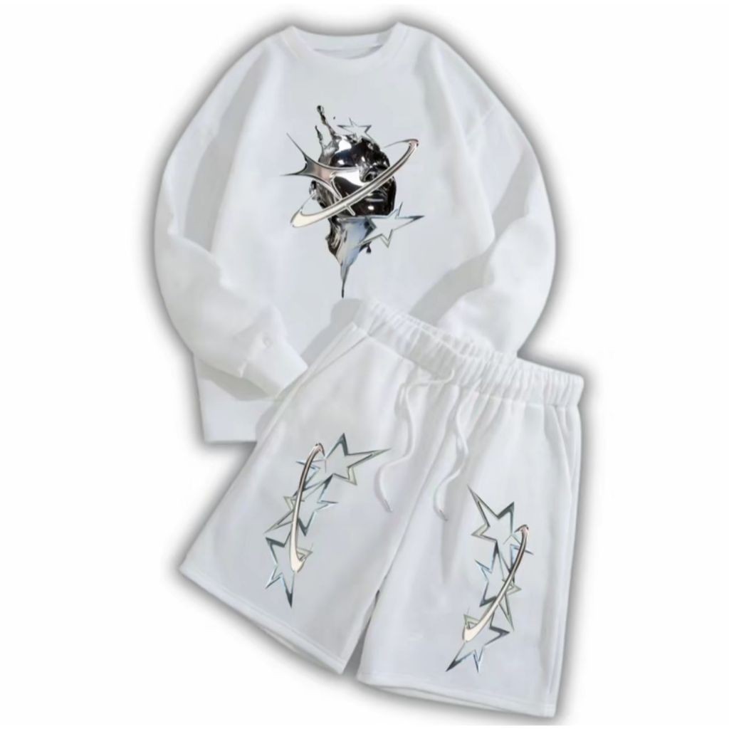 STREES ONE SET CREWNECK & SHORTPANT SILVERSTAR SETELAN BERBAHAN KAIN FLEECE LEMBUT ADEM SIZE M-XL
