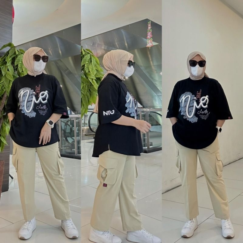 NIO - ONE SET CARGO SETELAN CELANA OVERSIZE_SETELAN CARGO TERBARU SETCEL KAOS KATUN COMBED PRINTING