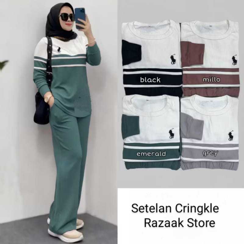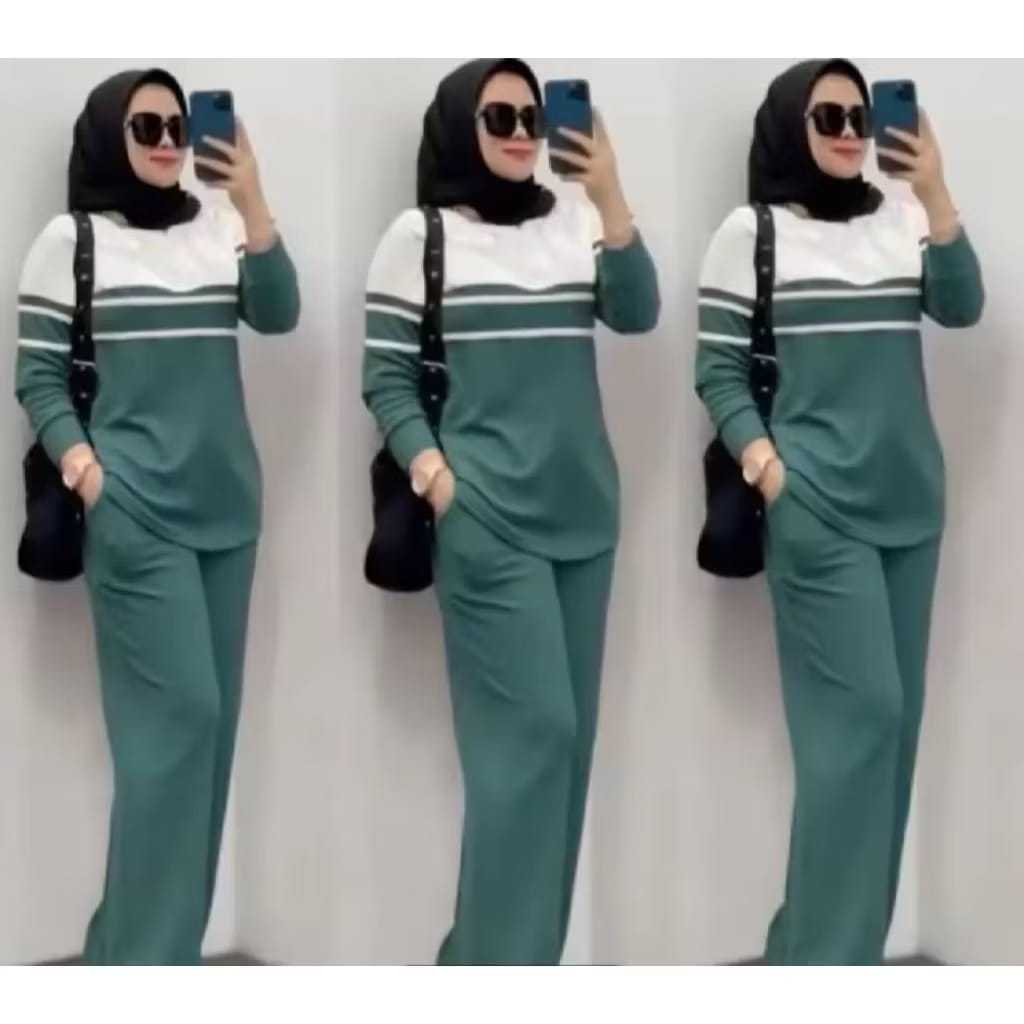 SETELAN WANITA JUMBO KEKINIAN APOLO SET TERBARU BAJU SETELAN POLOS KOMBINASI LENGAN PANJANG