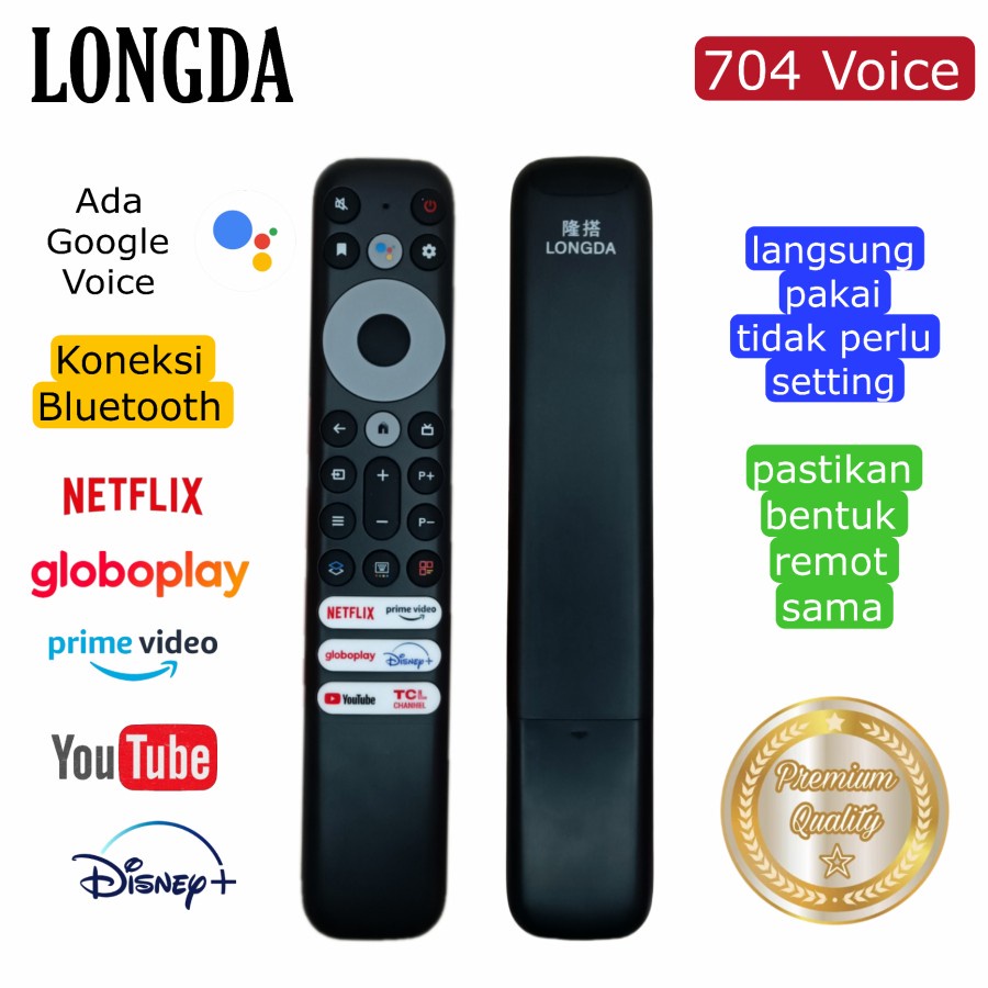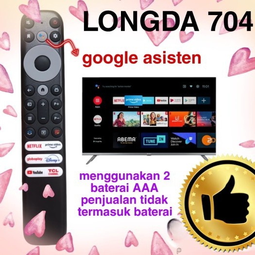 REMOTE PENGGANTI UNTUK TCL SMART TV ANDROID guugle VOICE LONGDA 704 KUALITAS ORI