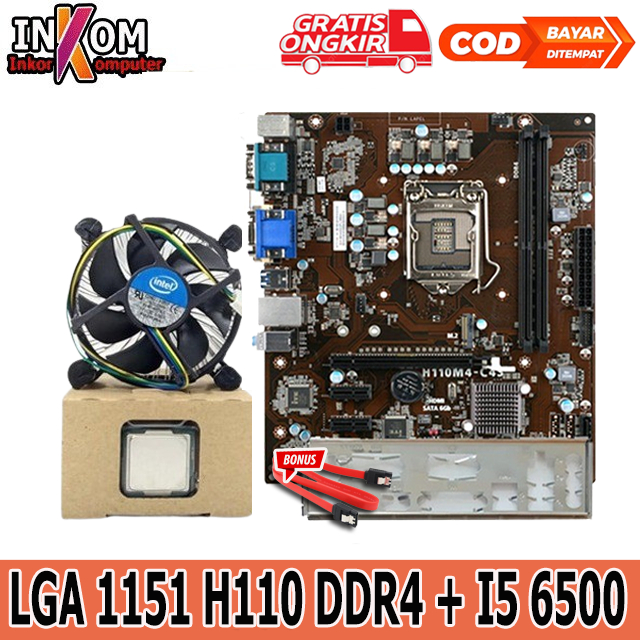 Paket Mobo H110 LGA 1151 DDR4 Plus Processor I5 6500 Fan