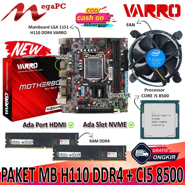 Paketan Mainboard 1151 H110 DDR4 + CORE I5 8400 / 8500 + FAN + RAM