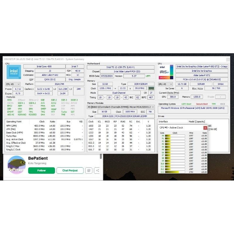 TOPC Motherboard B760 ITX + Intel i7 12 Gen ES (14 Core, 20 Thread)