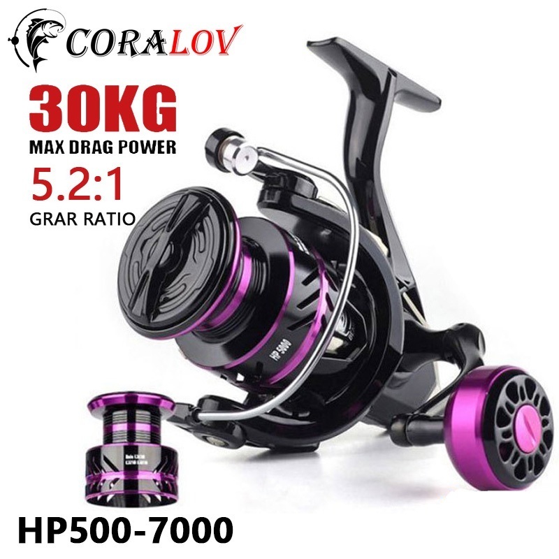 CORALOV Reel Pancing Metal HP500-7000 Power Handel Saltwater Joran Pancing Reel Max Darg 30kg