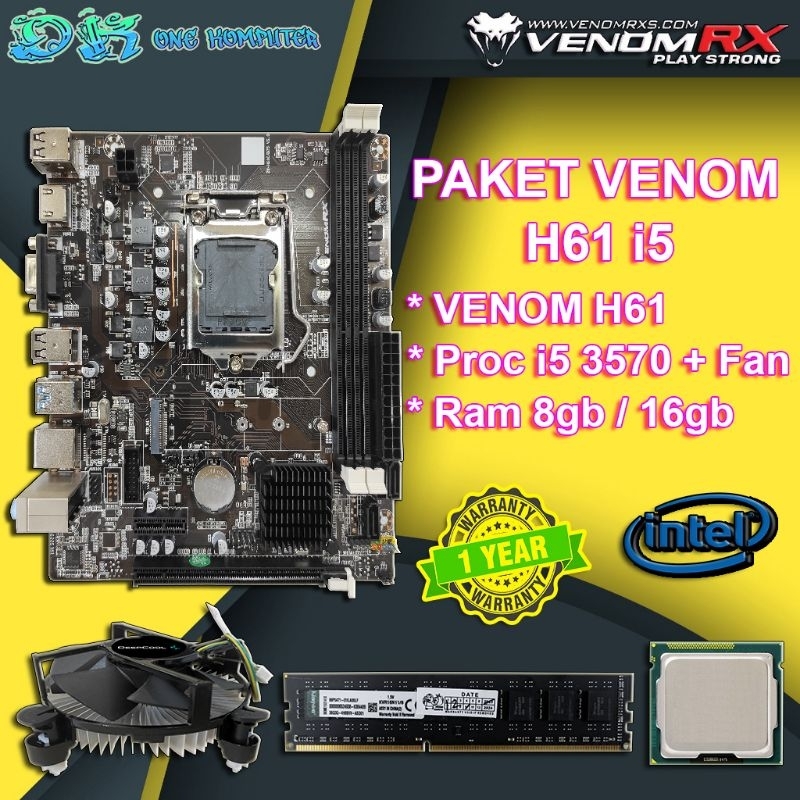 Paket Motherboard VenomRx H61 + Core i5 3570 3.4Ghz + Ram 8Gb / 16Gb